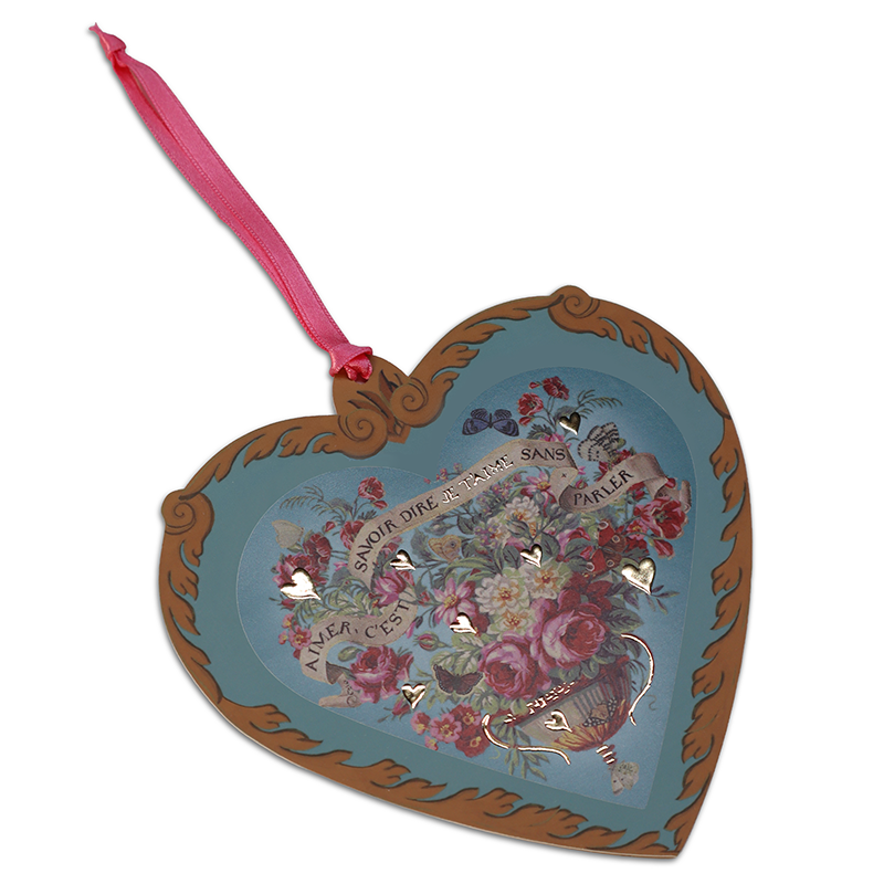 CARTE DE FÊTE DES MÈRES AVEC PENDENTIF EN FORME DE COEUR EN CARTON ET DORURES. SERIE LIMITEE A 300 EXEMPLAIRES.