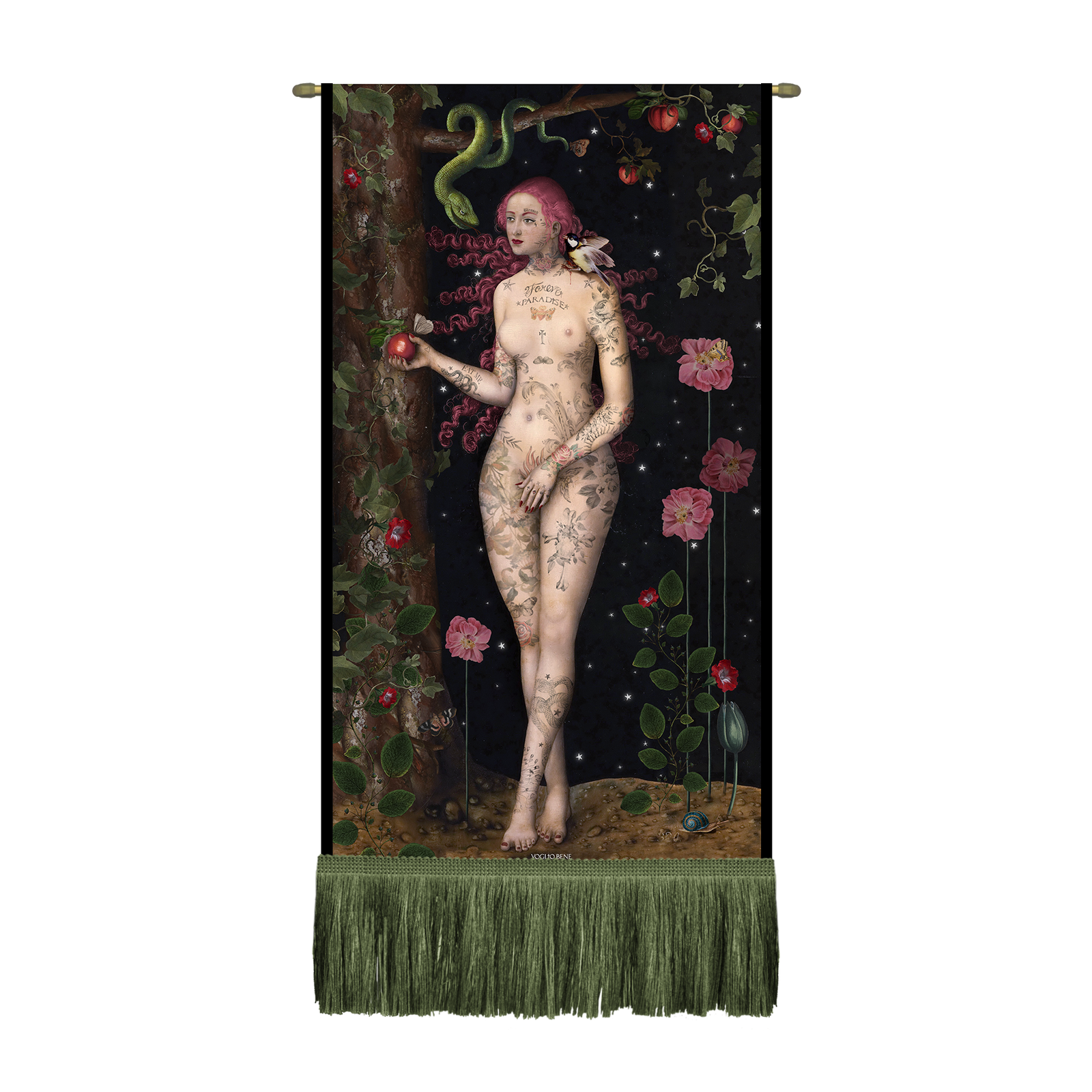 Mini tenture étendards format 37,5X72, imprimée sur velours de polyester. Haute definition d’impression. Confectionné avec un ourlet passe tringle et franges longues en bas. Biais de couleur coté gauche et droit.